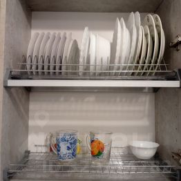 На кухне есть вся необходимая посуда для приготовления пищи и сервировки стола.