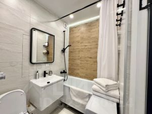 В квартире уютная изолированная спальня с двуспальной кроватью 160200 и новым премиальным ортопедическим матрасом, новым качественным бельём, в гостиной диван, который может быть кроватью, современный телевизор (4к, смарт тв), небольшая кухня со всем необходимым для комфортного проживания. Wi-fi. Гель для душа, белоснежные полотенца, тапочки, халаты.