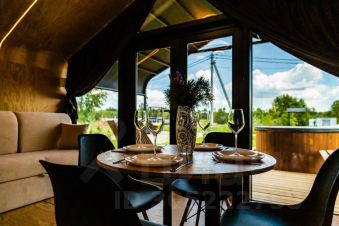 Это не стандартный отель или база отдыха, а деревня гостевых домов, которые принадлежат разным владельцам. Гостей в нашей деревне принимает управляющая компания.