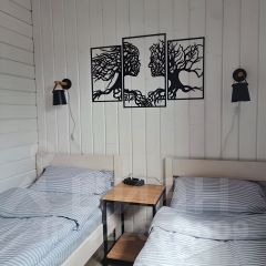В спальне две односпальные кровати (во втором доме двухспальная).