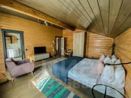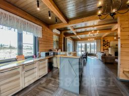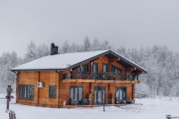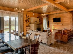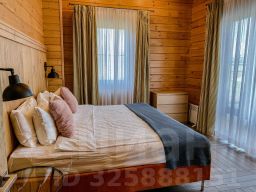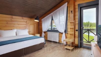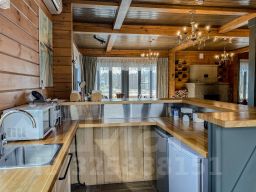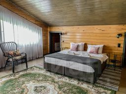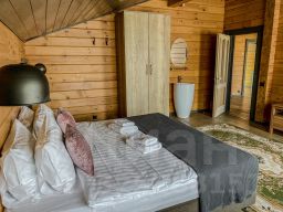 Дом с 4-мя спальнями-отличный вариант для отдыха за городом с большой компании. Коттедж имеет 2 этажа и открытую террасу со столиком и стульями, а также собственную мангальную зону, которая находится за домом. Терраса освещается уличными гирляндами. Внутри дома установлены панорамные окна, через которые открывается вид на озеро. Первый этаж оснащён просторной гостиной, зоной с камином, столовая, а также кухня, в которой имеется всё необходимое: холодильник, морозильная камера, микроволновка, варочная панель, чайник, большие тарелки, средние тарелки, маленькие тарелки, одна салатница, столовые приборы, бокалы, чашки, маленькая кастрюля и сковородка, дуршлаг. Кухонные ножи, дополнительные сковородки, кастрюли не предоставляются. Также на этаже находится одна спальня и душевая с санузлом. На втором этаже находятся 3 спальни, с выходом на просторную веранду-балкон. Вся мебель в доме выполнена в светлых тонах и изготовлена она из древесины.