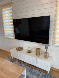 — Просторная гостиная с раскладным диваном и современным смарт-ТВ