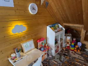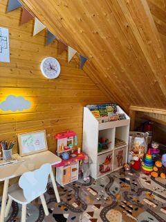 Просторный семейный двухэтажный дом с детской игровой зоной. Дом с 4-мя спальнями и 2-мя сан.узлами в теплом, натуральном экостиле. Площадь дома: 130 м². Вместимость: до 10 человек.