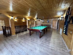 - Профессиональный бильярдный стол с зелёным сукном — центр внимания
