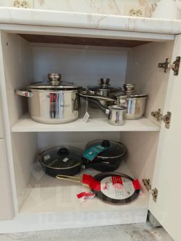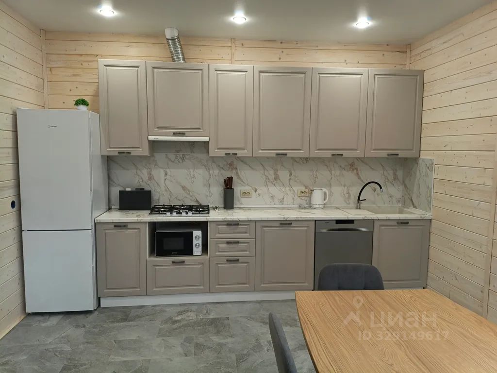 На кухне: холодильник, микроволновка, чайник, варочная панель, посудомоечная машина, посуда, кастрюли, сковородки и тд, большой обеденный стол, удобное кресло кокон, телевизор, вай-фай! Так же в кухне большая стеклянная дверь с выходом на веранду(на веранде в ближайшее время будет стоять деревянный столик и лавки, пока на фото нет)и с видом на Волгу!