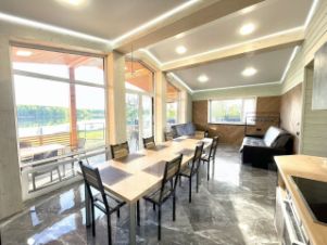 Участок выходит на берег реки с собственным причалом, территория полностью огорожена, рядом с домом расположена мангальная зона. Возможна организация рыбалки, охоты и водных развлечений, аренда лодки, сапбордов, велосипедов за дополнительную плату.