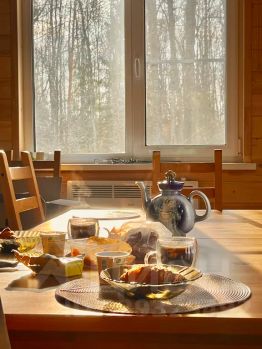 Если есть желание попариться и попить ароматного чайку с видом на лес, вы можете заказать баню. Бронируется за сутки.