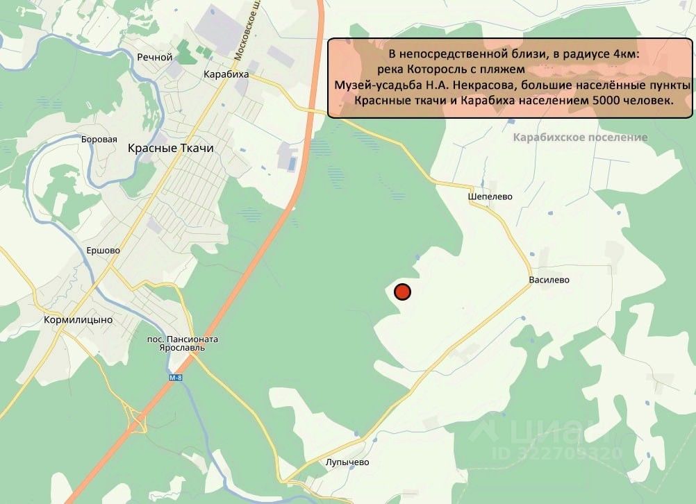 В непосредственной близости, в радиусе 4км, Музей-усадьба Некрасова Н.А. и река Которосль.