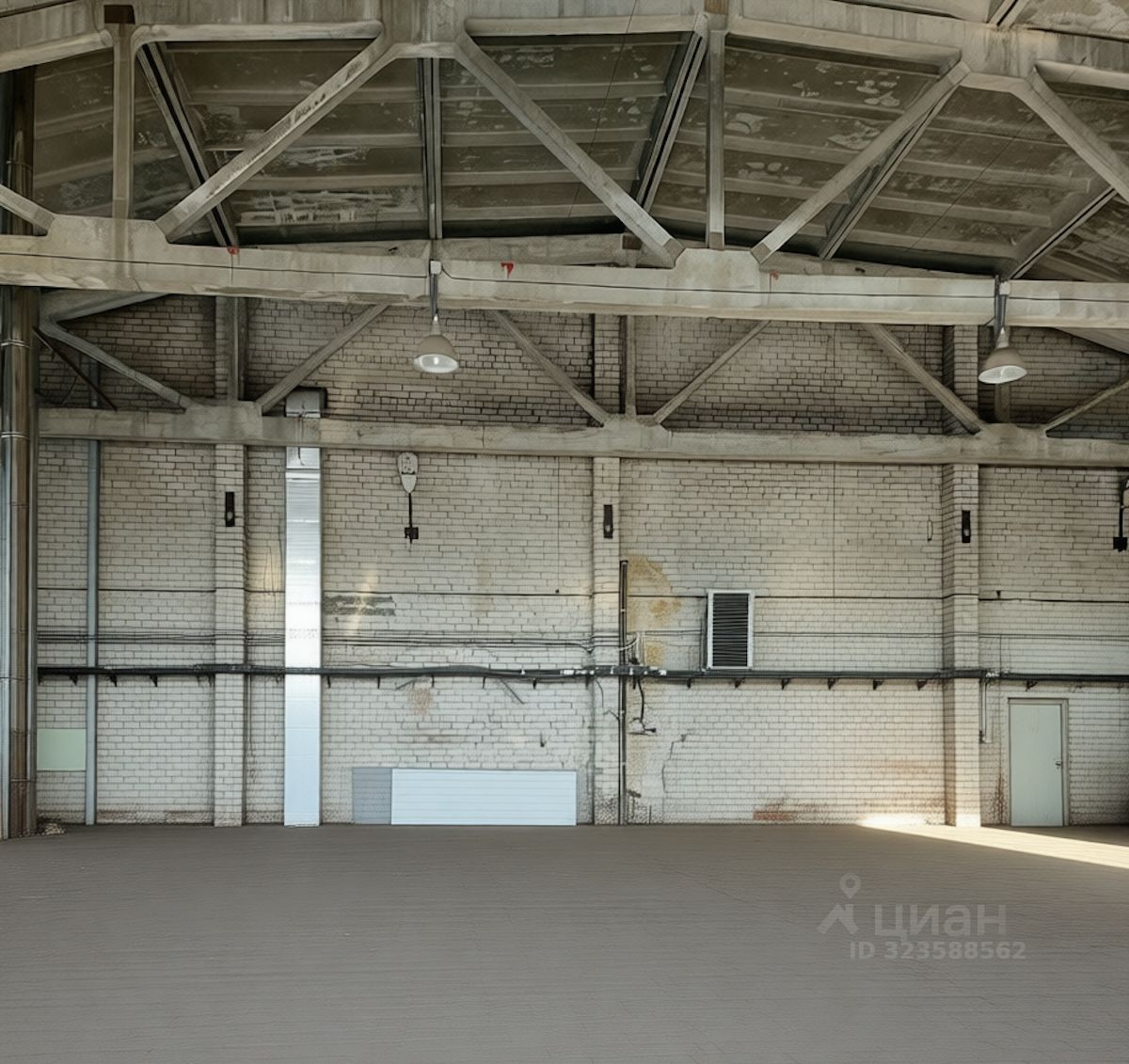 Производственная часть площадью 1650 м². Высота до фермы 7 м, до перекрытия 10 м. Полы бетонные. Автомобильный пандус.