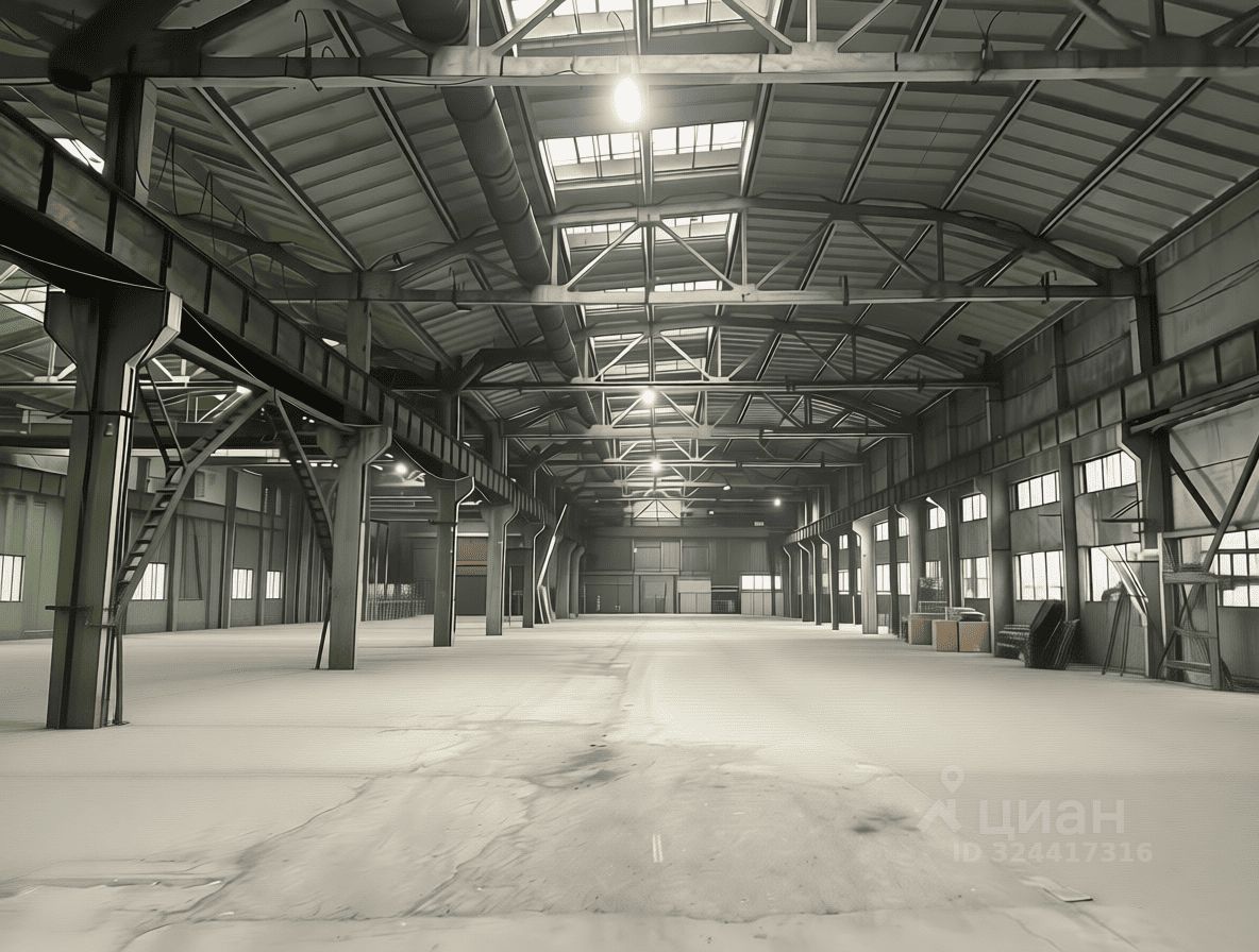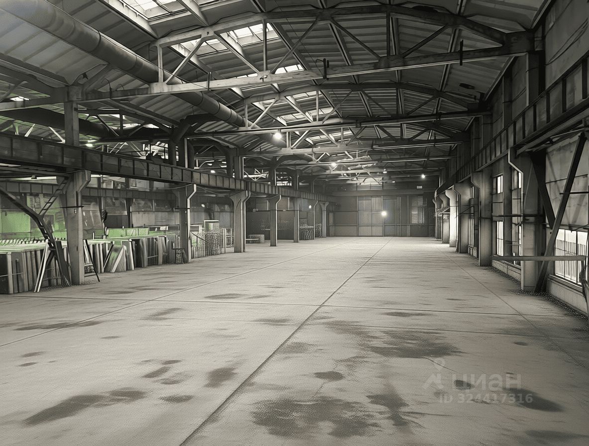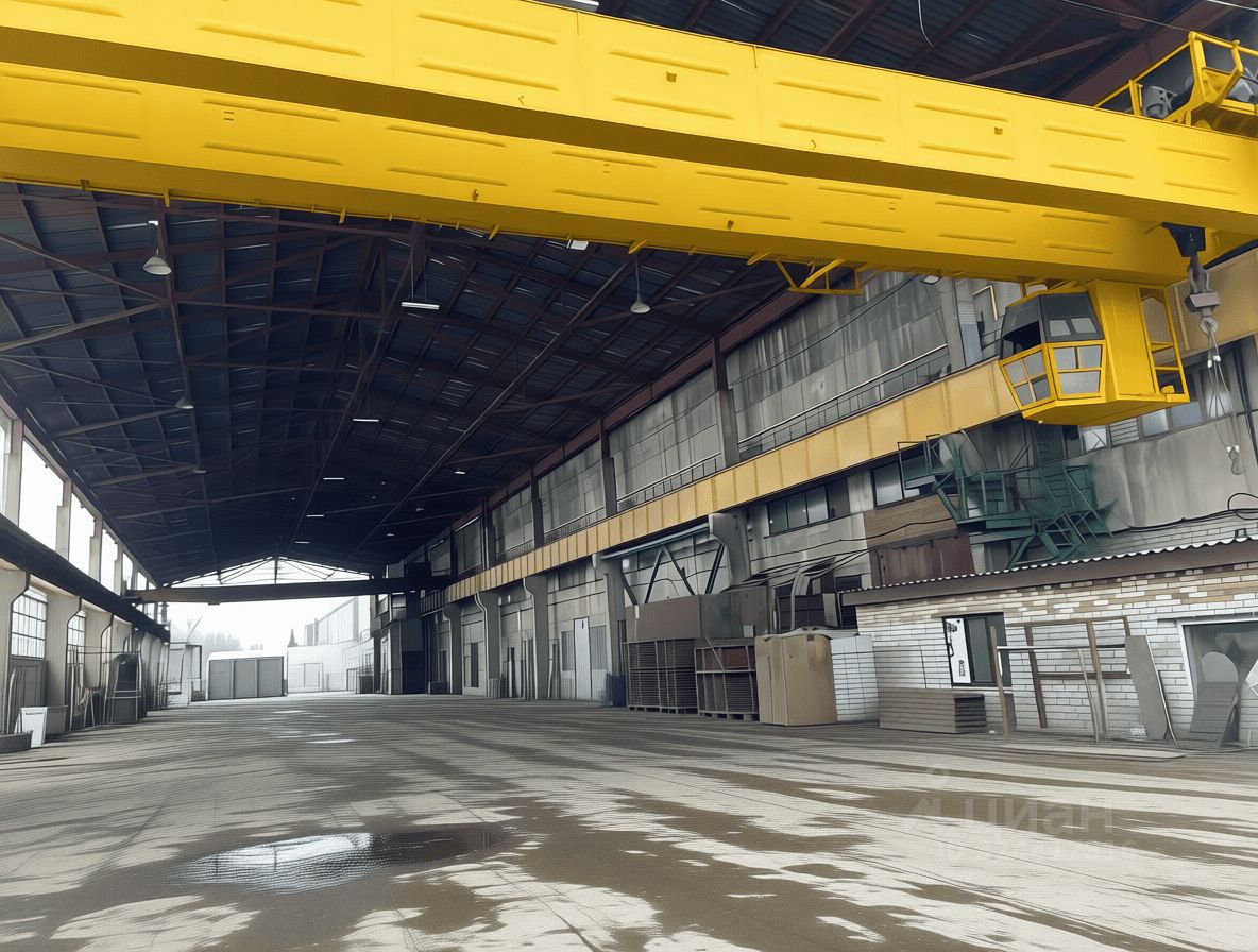 - Производственно - складское помещение общей площадью 9000 м². Состоит из трех пролетов, ширина каждого 24 м, полы бетонные, высота 12 м. Каждый пролет оборудован двумя кран-балками грузоподьемностью 5 т + 10 т. Несколько ворот на нулевом уровне с возможностью въезда внутрь помещения.