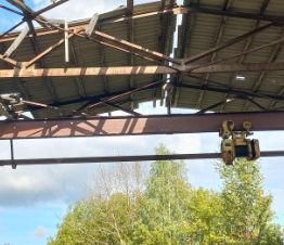 Продаётся ангар (каркас) 12 ширина 50 длина.7 метров высота. 13 ферм.26 столбов. Две кран балки 3.5 тонн.