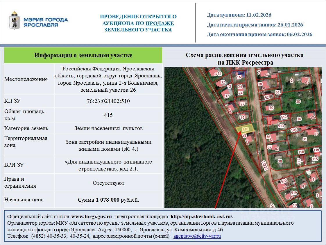 Российская Федерация, Ярославская область, городской округ город Ярославль, город Ярославль, улица 2-я Больничная, земельный участок 26