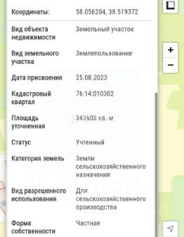 Участок площадью 3436,08 соток предназначен для сельского хозяйства.