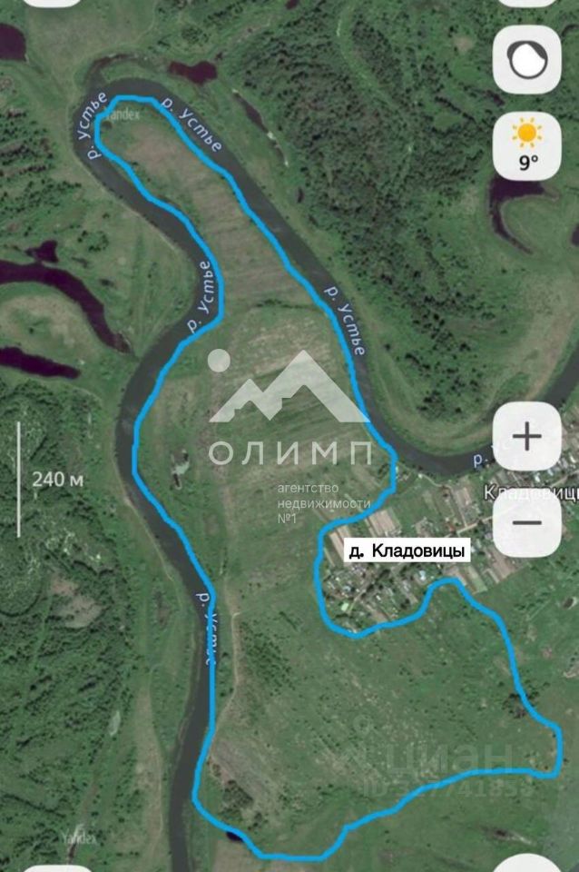 52Га земли с электричеством на берегу реки Устье (ширина реки 50м). Купите целиком или от 9 соток!