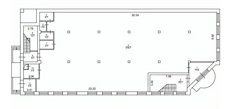 1 этаж: 565,6 кв.м. полностью подходит под коммерцию (магазины и т.д.). На первом этаже расположен тепловой узел и электрический распределительный щит.