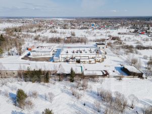 На территории есть гаражные помещения для хранения и обслуживания автопарка ,своя автономная канализация ,своя автозаправка, есть свой магазин и столовая.