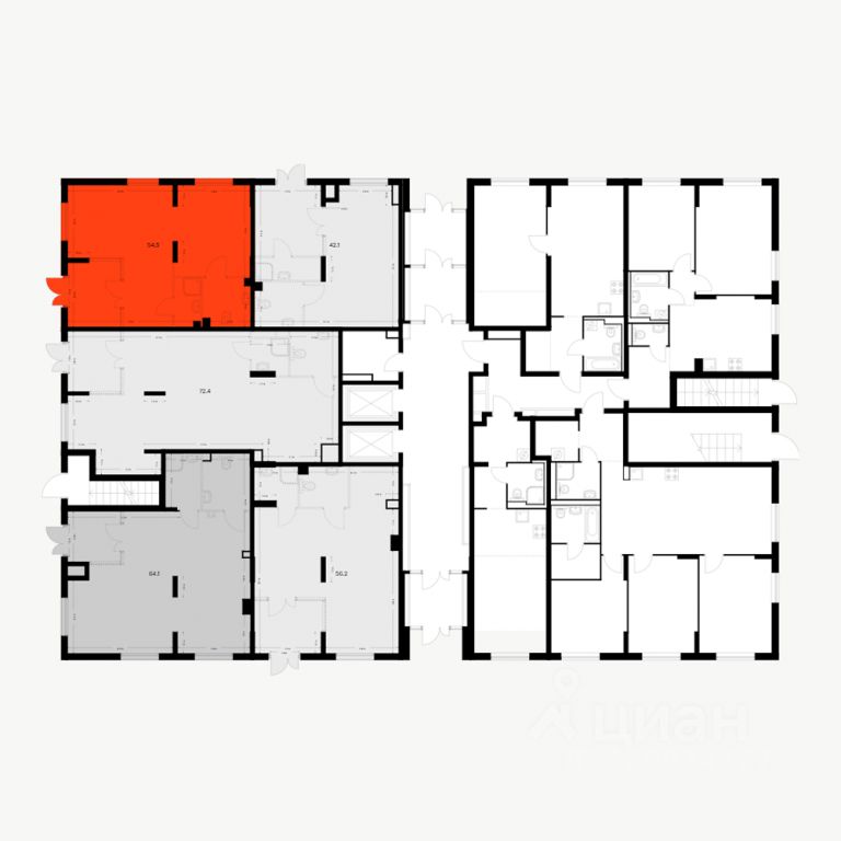- Открытая планировка, возможно объединить несколько помещений