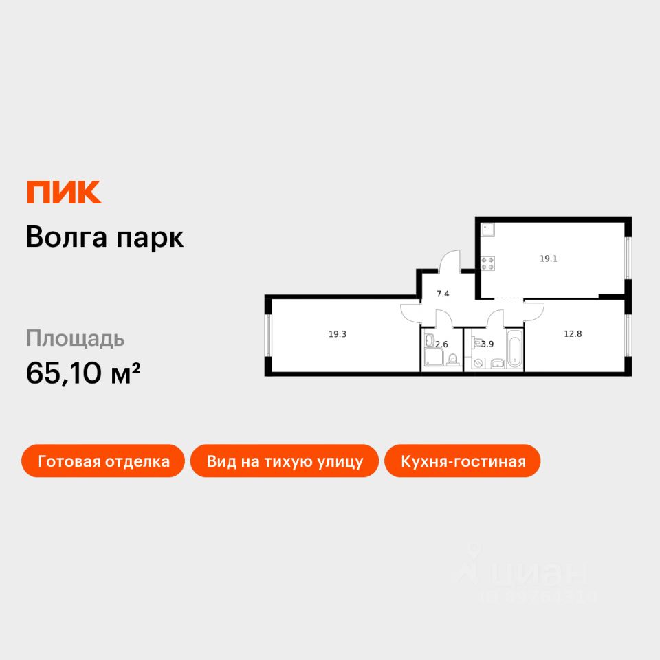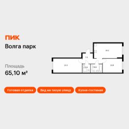 Продаётся 2-комн. квартира площадью 65,1 кв.м на 1 этаже 17 этажного дома (Корпус 6Б, Секция 1) проекта ПИК Волга парк. Светлый просторный подъезд на уровне земли, функциональная планировка, большие окна, c отделкой.