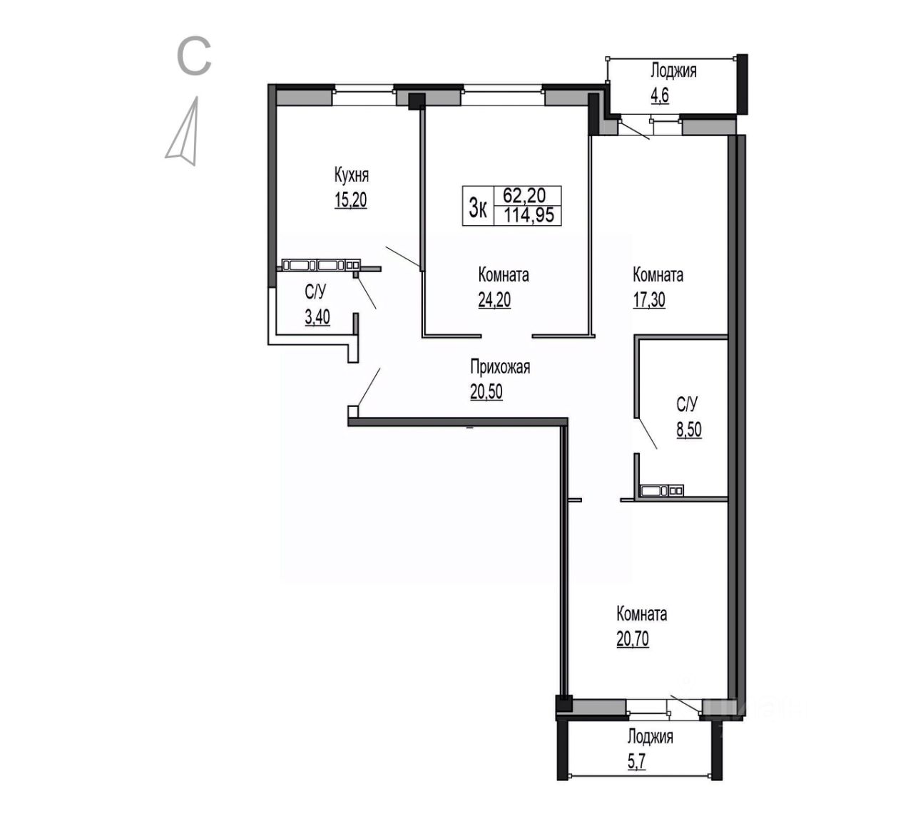 114,95 м²