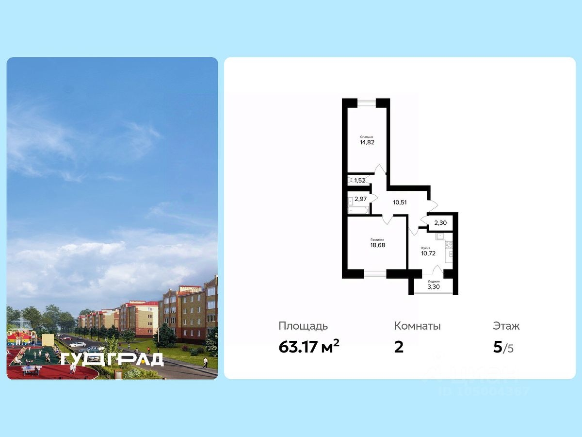 • площадь 63.17 м²