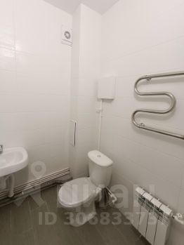 Белые обои под покраску, светлые двери и линолеум, санузел в кафеле, установлена сантехника