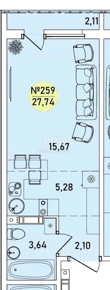 Общая площадь27,74 м²