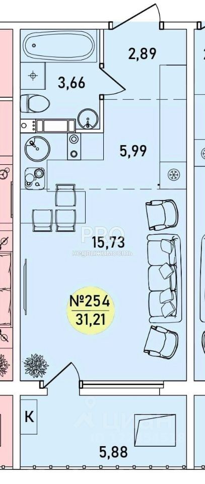 Общая площадь31,21 м²