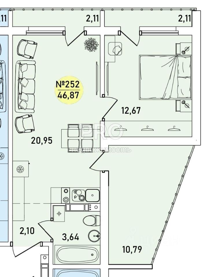 Общая площадь46,87 м²