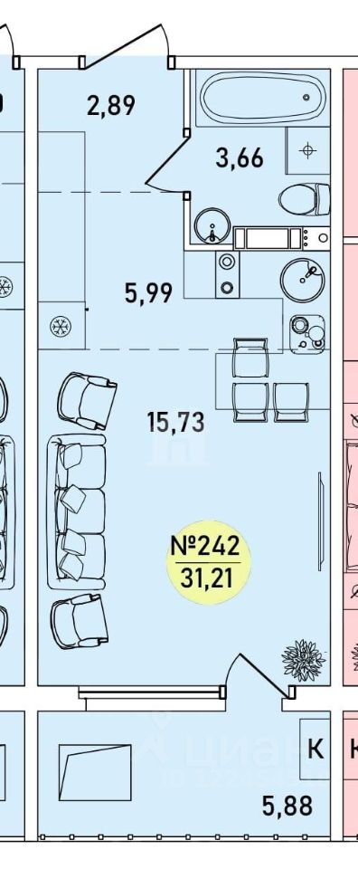 Общая площадь31,21 м²