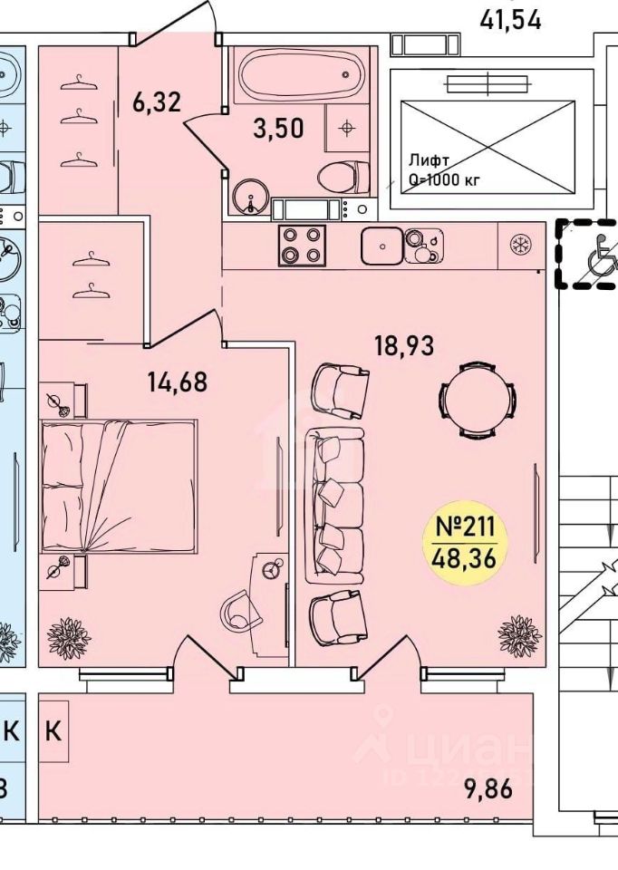 Общая площадь48,36 м²