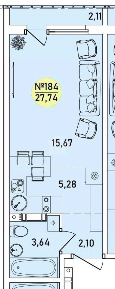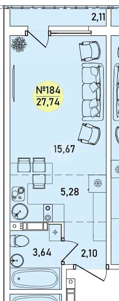Общая площадь27,74 м²