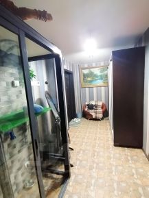 Из гостиной предусмотрен выход на застекленный балкон. Санузел совмещен в плитке. На полу в прихожей и на кухне керамическая плитка, в комнате ламинат. Все окна пластиковые. Качественная входная группа. Установлены все счетчики.