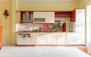 3. Оборудование квартиры: кухонный гарнитур с бытовой техникой, шкафы для одежды, мебель в гостиной.