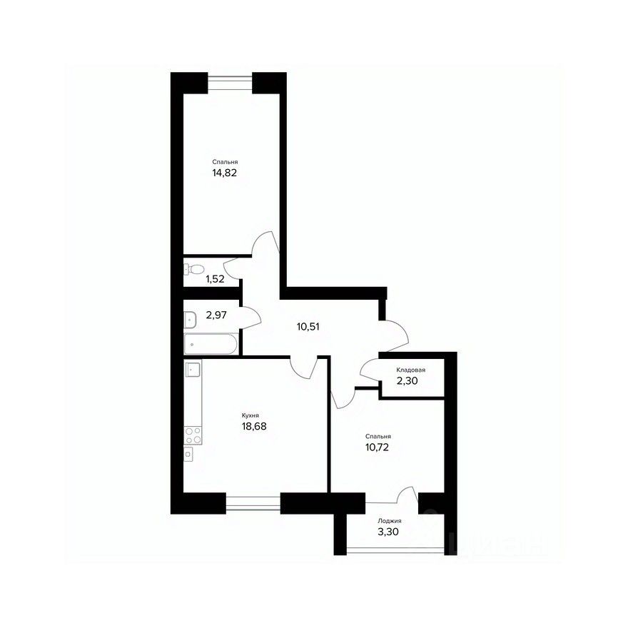 • спальня 14.82 м²