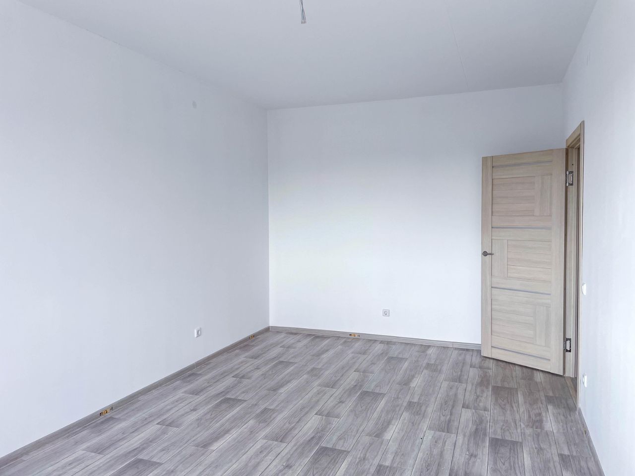 Белые обои под покраску, светлые двери и линолеум, санузел в кафеле, установлена сантехника