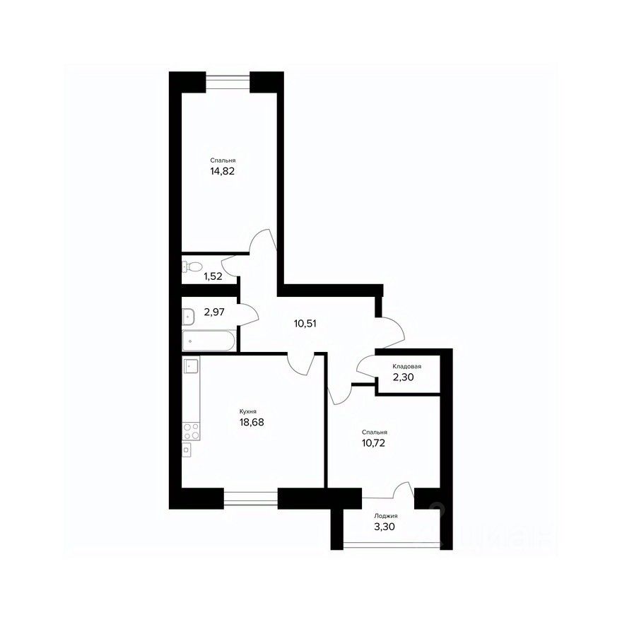 • спальня 14.82 м²