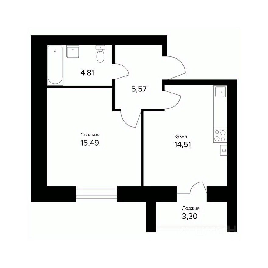 • спальня 15.49 м²