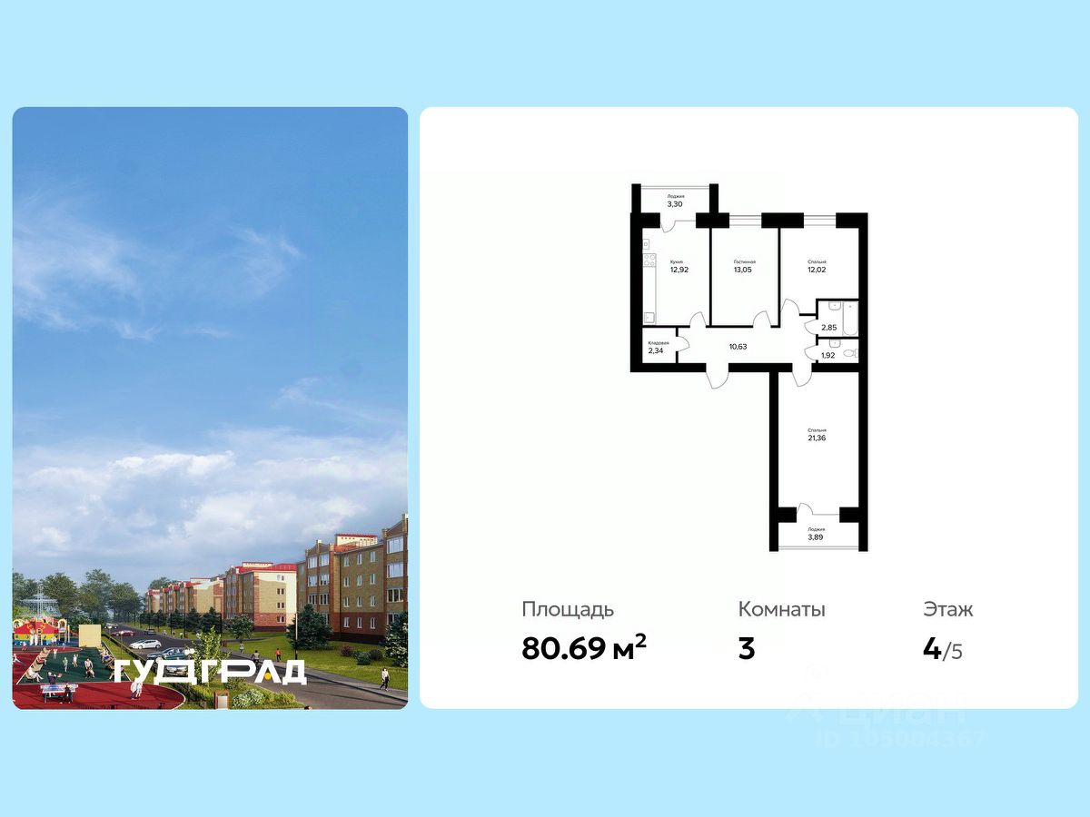 • площадь 80.69 м²