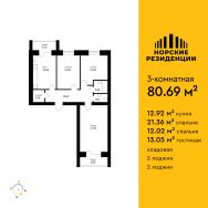 • площадь 80.69 м²