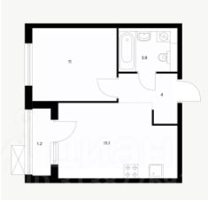 Эргономичная планировка с уютной спальней и просторной кухней-гостиной с выходом на лоджию.