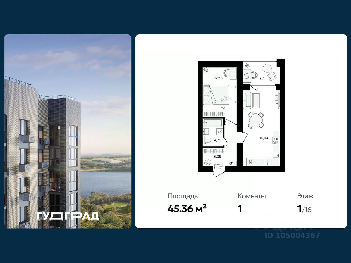 Продаётся 1-комнатная квартира в строящемся доме (Дом 2), срок сдачи: III-кв. 2026, общей площадью 45.36 кв.м., на 1 этаже. При планировании участка применена концепция "двор без машин".Внутренняя часть двора -благоустроенная территория для занятий спортом, отдыха, игр. В каждой секции дома предусмотрены проходные подъезды, через которые жители дома будут попадать и на дворовую территорию и к дорогам и парковкам, расположенным с внешней стороны. Вход в подъезды с уровня земли. Каждый подъезд дома имеет лифт грузоподъемностью 630 кг.