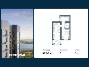 Продаётся 1-комнатная квартира в строящемся доме (Дом 2), срок сдачи: III-кв. 2026, общей площадью 47.68 кв.м., на 1 этаже. При планировании участка применена концепция "двор без машин".Внутренняя часть двора -благоустроенная территория для занятий спортом, отдыха, игр. В каждой секции дома предусмотрены проходные подъезды, через которые жители дома будут попадать и на дворовую территорию и к дорогам и парковкам, расположенным с внешней стороны. Вход в подъезды с уровня земли. Каждый подъезд дома имеет лифт грузоподъемностью 630 кг.