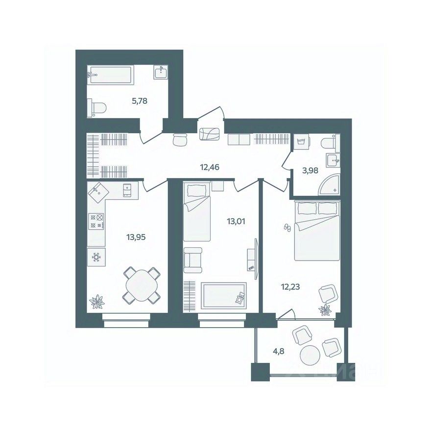 Продаётся 2-комнатная квартира в строящемся доме (Дом 2), срок сдачи: III-кв. 2026, общей площадью 63.81 кв.м., на 3 этаже. 8-и этажный жилой дом располагается по адресу : г. Ярославль, Тутаевское шоссе, д.60, параллельно Тутаевскому шоссе.