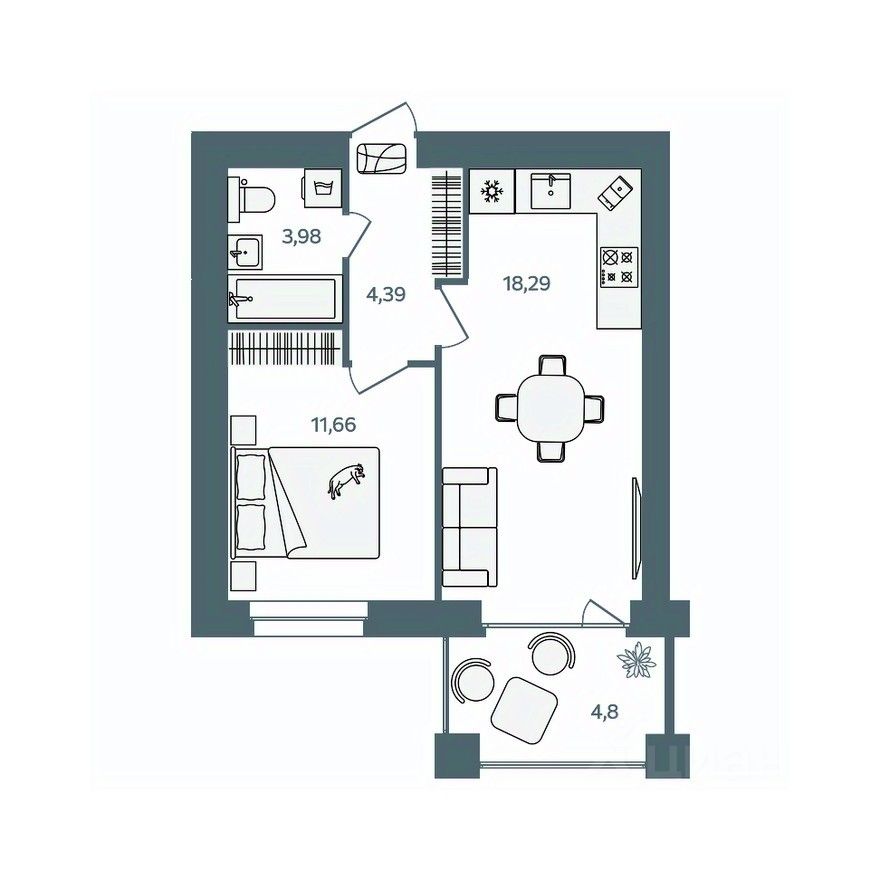 При разработке планировок квартир применяется зарекомендовавшая себя на практике концепция квартиры с большой комнатой, включающей в себя зоны гостиной, кухни и столовой. Эта комната является своеобразным аналогом общественного пространства для членов семьи. Спальни и детские комнаты запроектированы меньшего размера, но с полным учетом всех необходимых функциональных зон и сценариев. Таким образом в каждой, даже однокомнатной квартире есть обособленные дневное общественное и ночное приватное пространства.