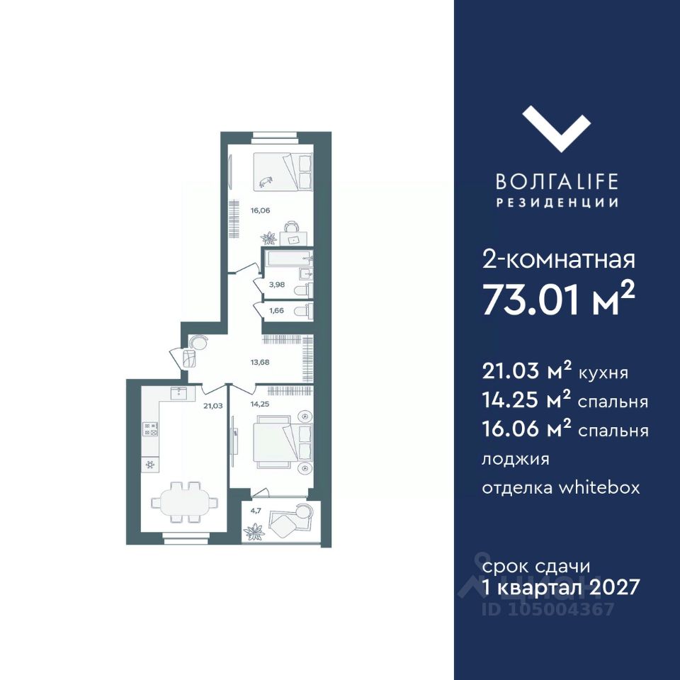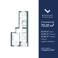 Продаётся 2-комнатная квартира в строящемся доме (Дом 2), срок сдачи: III-кв. 2026, общей площадью 73.01 кв.м., на 4 этаже. 8-и этажный жилой дом располагается по адресу : г. Ярославль, Тутаевское шоссе, д.60, параллельно Тутаевскому шоссе.