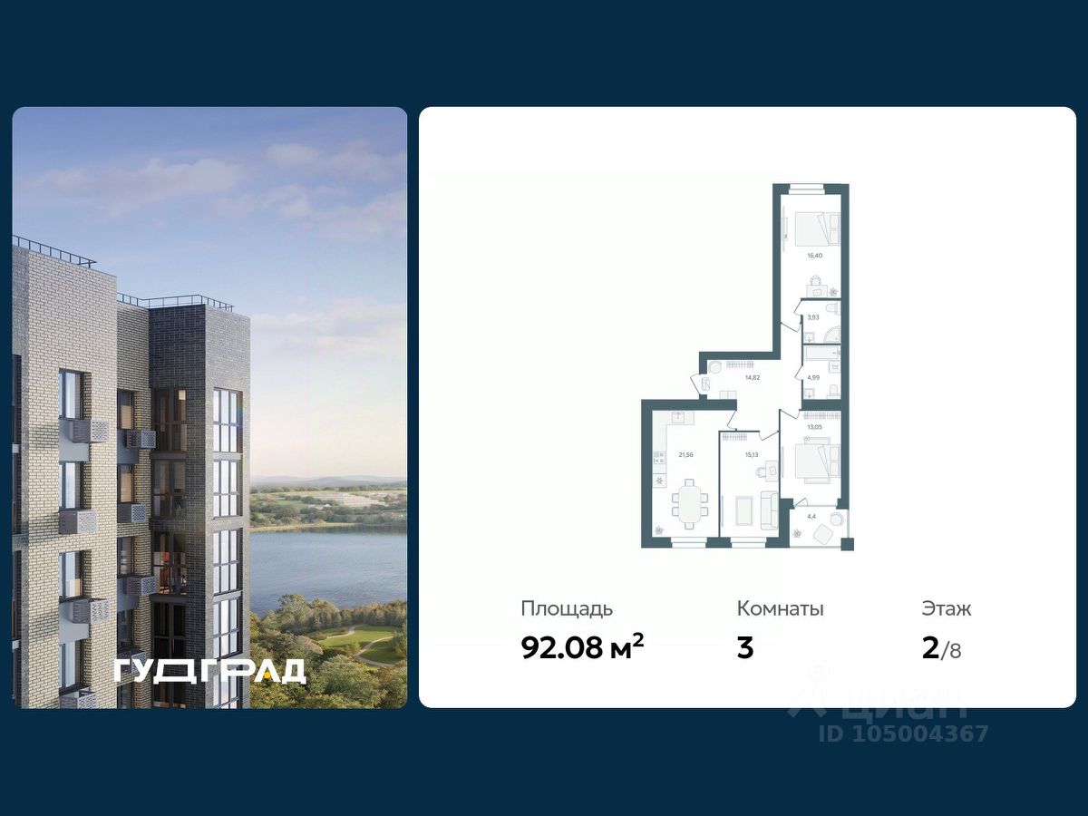 Продаётся 3-комнатная квартира в строящемся доме (Дом 2), срок сдачи: III-кв. 2026, общей площадью 92.08 кв.м., на 2 этаже. При планировании участка применена концепция "двор без машин".Внутренняя часть двора -благоустроенная территория для занятий спортом, отдыха, игр. В каждой секции дома предусмотрены проходные подъезды, через которые жители дома будут попадать и на дворовую территорию и к дорогам и парковкам, расположенным с внешней стороны. Вход в подъезды с уровня земли. Каждый подъезд дома имеет лифт грузоподъемностью 630 кг.