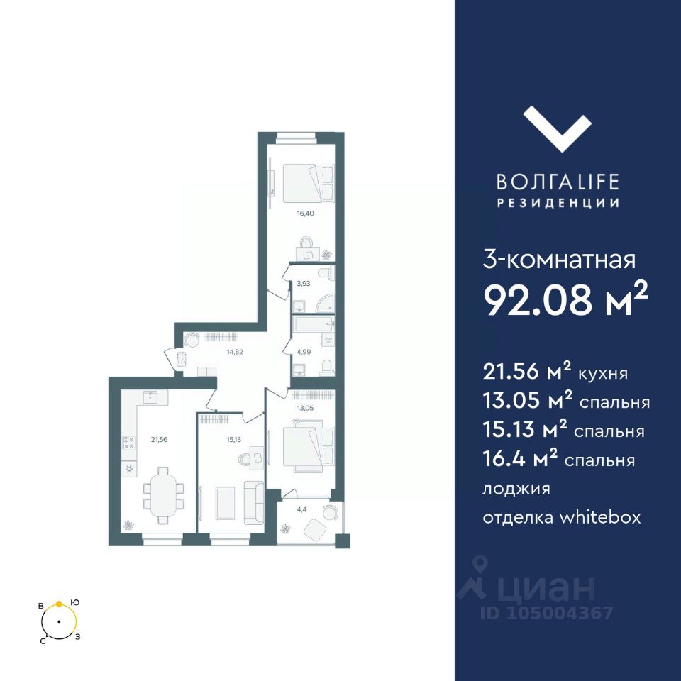 Продаётся 3-комнатная квартира в строящемся доме (Дом 2), срок сдачи: III-кв. 2026, общей площадью 92.08 кв.м., на 3 этаже. При планировании участка применена концепция "двор без машин".Внутренняя часть двора -благоустроенная территория для занятий спортом, отдыха, игр. В каждой секции дома предусмотрены проходные подъезды, через которые жители дома будут попадать и на дворовую территорию и к дорогам и парковкам, расположенным с внешней стороны. Вход в подъезды с уровня земли. Каждый подъезд дома имеет лифт грузоподъемностью 630 кг.