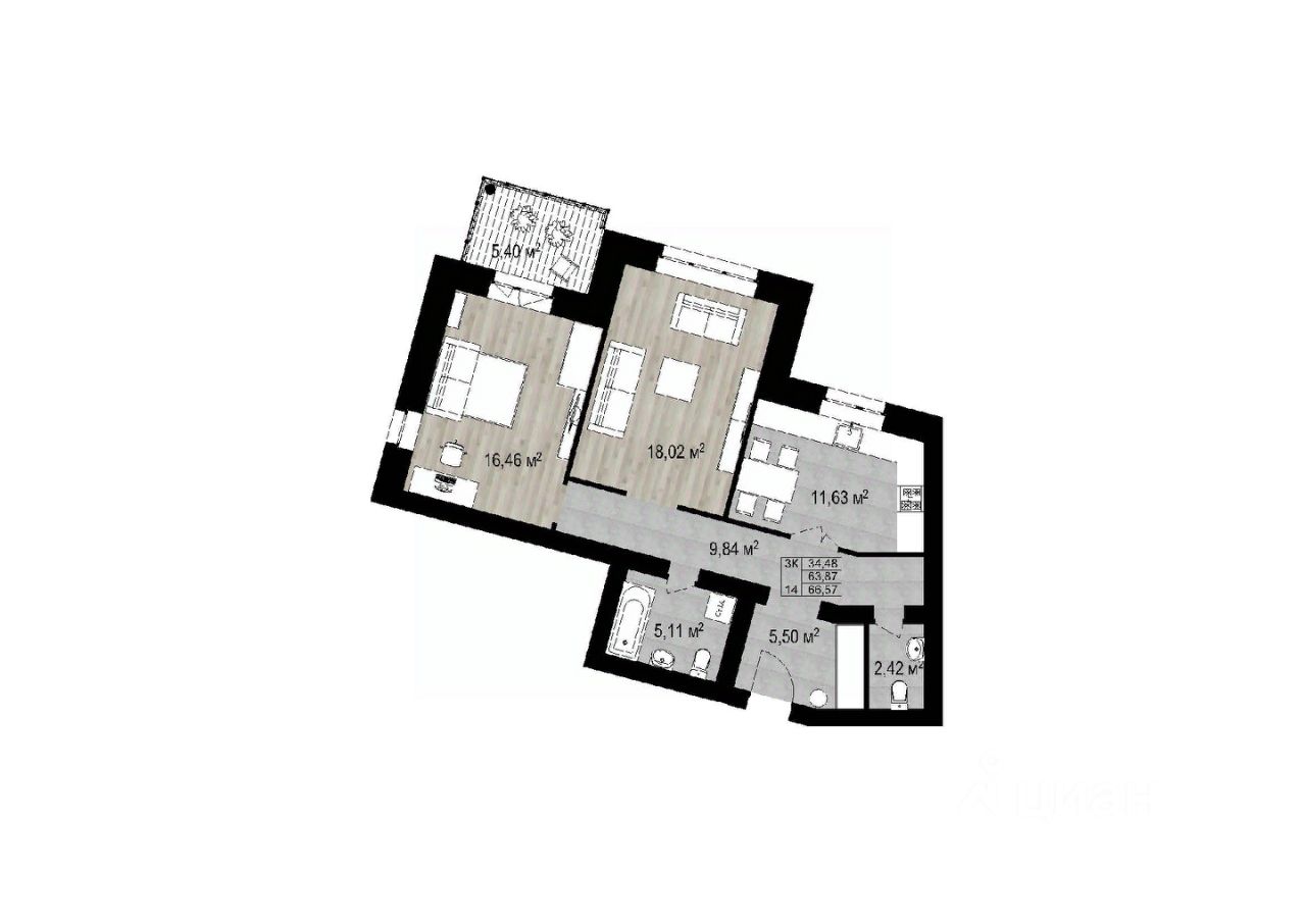 Продаётся 2-комнатная квартира в строящемся доме (Строение 1), срок сдачи: IV-кв. 2025, общей площадью 71.68 кв.м., на 3 этаже. Новый жилой комплекс по ул. Тулупова от застройщика ООО СЗ "КС55".