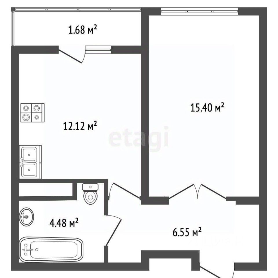 - большая комната позволит вам зонировать пространство и обустроить уютную кухонную зону и зону отдыха.