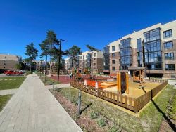 - Просторные мощеные пешеходные зоны вдоль жилых домов закрыты от проезда машин и отлично подойдут для променада и прогулок с коляской